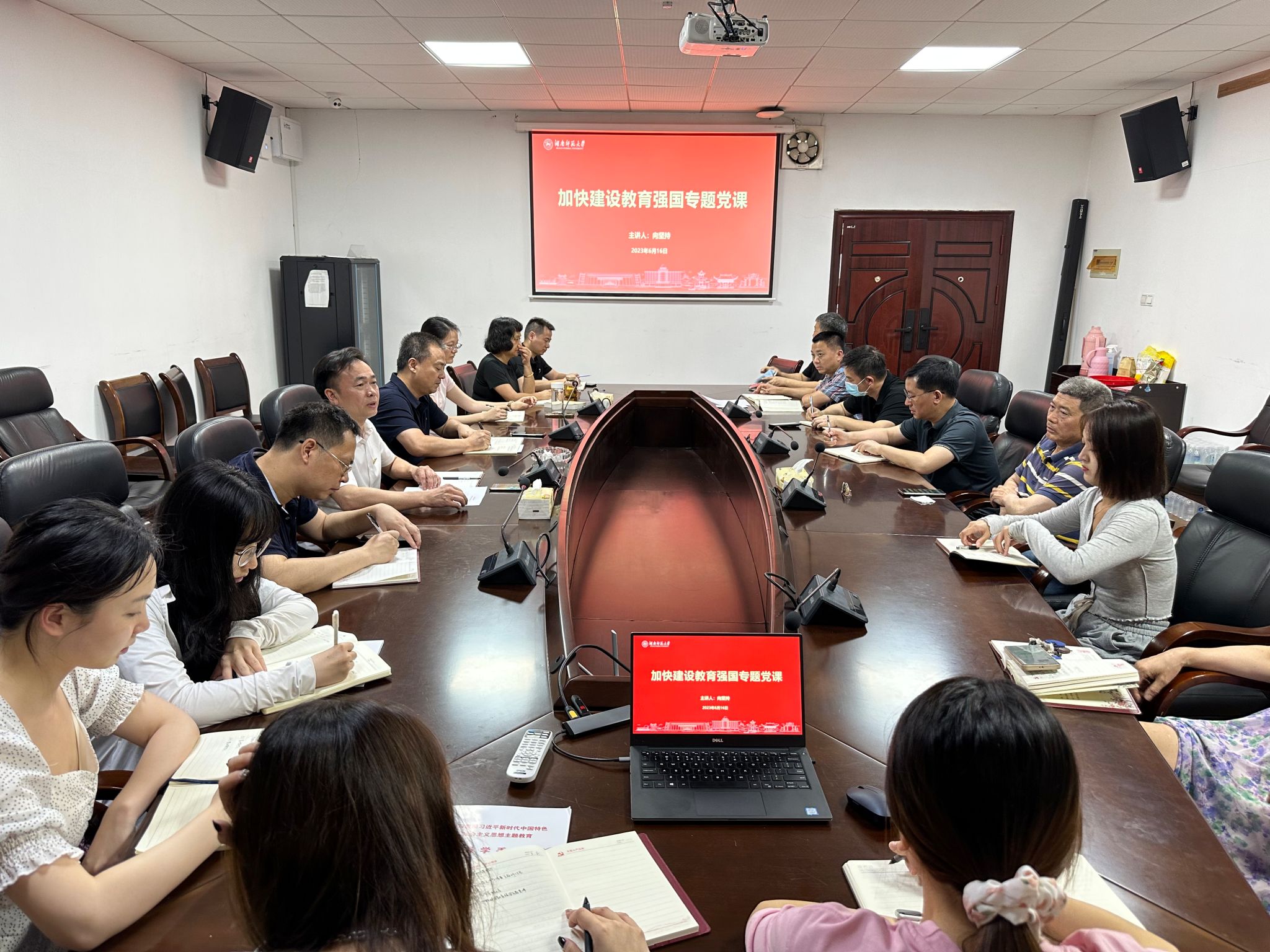 向坚持围绕中国共产党的两个百年目标,深入阐述了习近平总书记“加快建设教育强国,为中华民族伟大复兴提供有力支撑”的重要讲话精神。他指出,要把加强理论学习与做好本职工作同安排、同部署、同推进,坚持党对教育事业的全面领导,以高度的责任心和使命感加快推进教育现代化,为全面推进中华民族伟大复兴贡献力量。