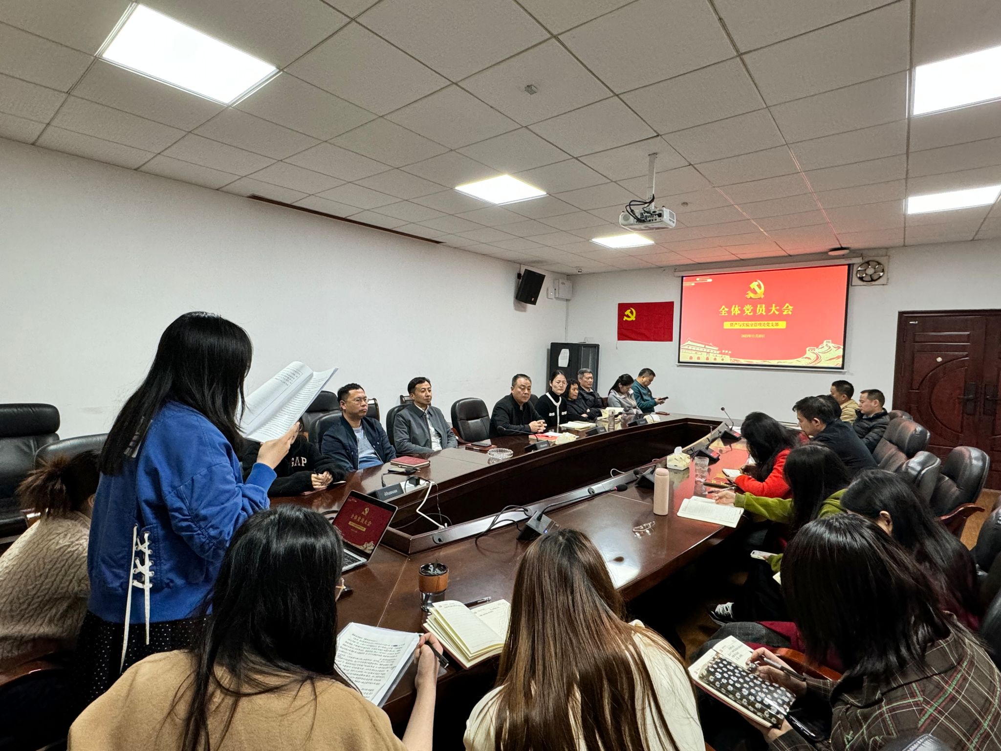 11月20日下午,我处党支部在会议室召开支部党员大会,表决接收发展对象李晗铮、盛洁两位同志为中共预备党员相关事宜。会议由支部书记罗万才主持。