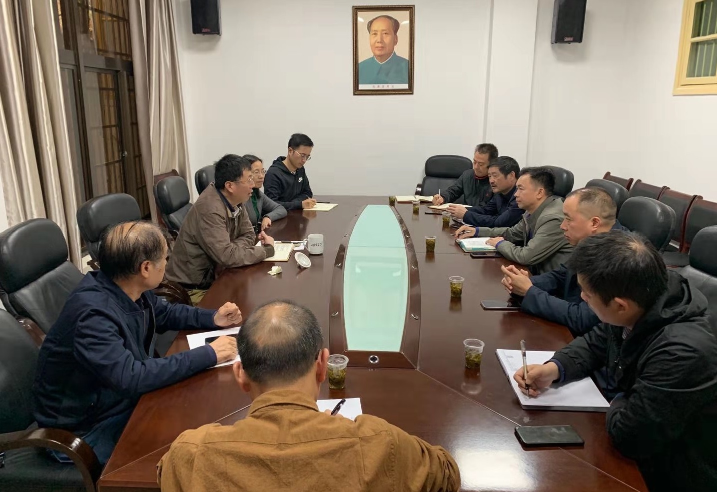 10月17日上午,我处处长向坚持一行六人到人事处调研座谈,人事处处长匡尹俊等在会议室热情接待了向坚持一行。