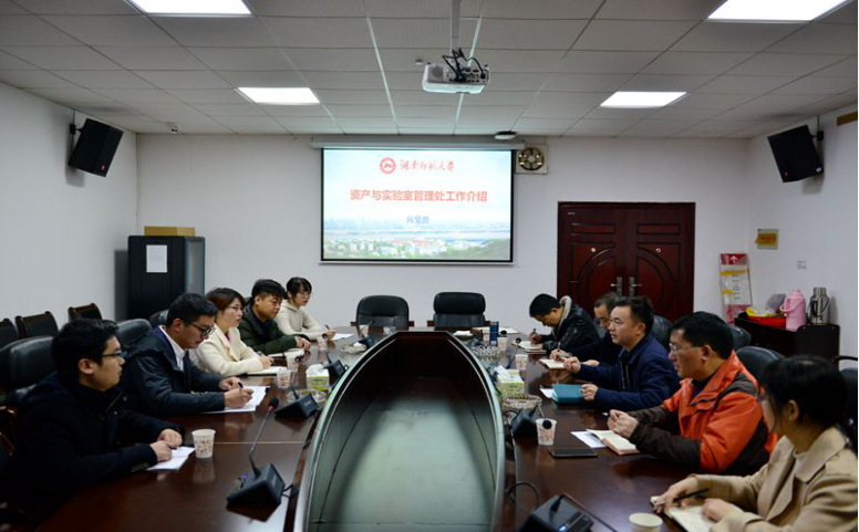 向坚持对肖利猛一行的到来表示热烈欢迎,并介绍了学校和我处的基本情况,分享了我校设备采购、资产管理和实验室管理等方面的做法。