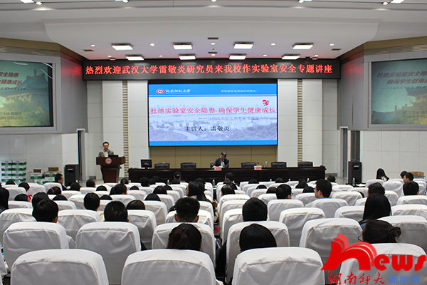 (记者 刘涵钰 毛云迪 实习记者 彭悦)10月23日下午,武汉大学研究员雷敬炎在至善讲堂为我校师生带来题为“杜绝实验室安全隐患确保学生健康成长——以武汉大学实验室安全建设为例"的专题讲座。讲座由校资产与实验室管理处处长向坚持主持。