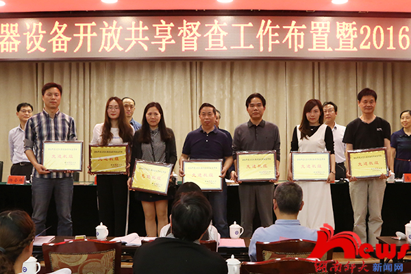 (记者 李丽芳 桂国甦)5月10日上午,我校在红楼五楼会议室举行迎接科技部大型仪器设备开放共享督查工作布置暨2016年度大型仪器设备管理与效益考核表彰会议。副校长欧阳峣出席会议。会议由校长办公室主任肖新祥主持。 资产与实验室管理处处长向坚持对我校迎接科技部督查工作进行布置,明确任务分解和时间进度安排,并对我校2016年度大型仪器设备管理与使用效益考核情况进行了汇报。 发展规划与学科建设处处长杨震宣读了我校2016年度大型仪器设备效益考核的先进机组表彰名单,并进行了颁奖仪式。 随后,获奖先进机组化学化工学院张友玉教授作为代表发言。 欧阳峣对获奖机组表示祝贺,要求对不合格机组进行公示,落实整改。他指出,大型仪器开放共享是一个复杂的系统工程,在逐步形成共识,我校要进一步总结经验,提出改进思路,优化工作机制,加强技术队伍建设,并对落实此次督查工作提出了三点要求:一要从思想上高度重视,这既是科技部对我校的工作要求,也是我校重大改革措施的一部分;二要明确责任,把分工落到实处;三是各部门要统筹协作,牵头单位要起引导作用,其他单位要积极配合,按照方案要求,做好迎接督查的充分准备。他希望我校以此次迎接督查工作为契机,进一步推进大型仪器设备管理及开放共享工作,充分发挥大型仪器设备在教学和科研方面的作用。 学校有关二级单位负责人,迎接科技部督查工作领导小组成员,大型仪器设备管理委员会部分成员,重点实验室主要负责人等参加会议。