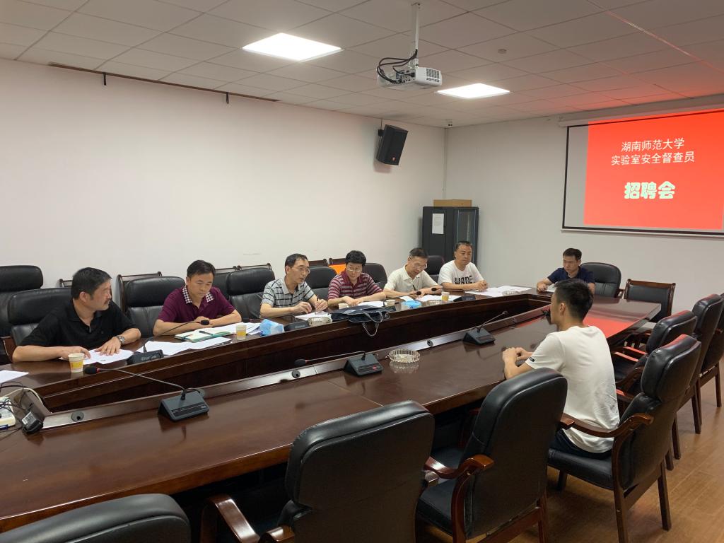 6月11日,我校实验室安全督查员招聘工作在资产与实验室管理处会议室举行。校实验室安全领导小组办公室主任、资产与实验室管理处处长向坚持教授,校实验室安全领导小组办公室成员、资产与实验室管理处副处长蒋能胜和校实验室安全督查工作组组长何红运、杨华中与姜孝成三位教授担任评委,招聘会由蒋能胜主持。