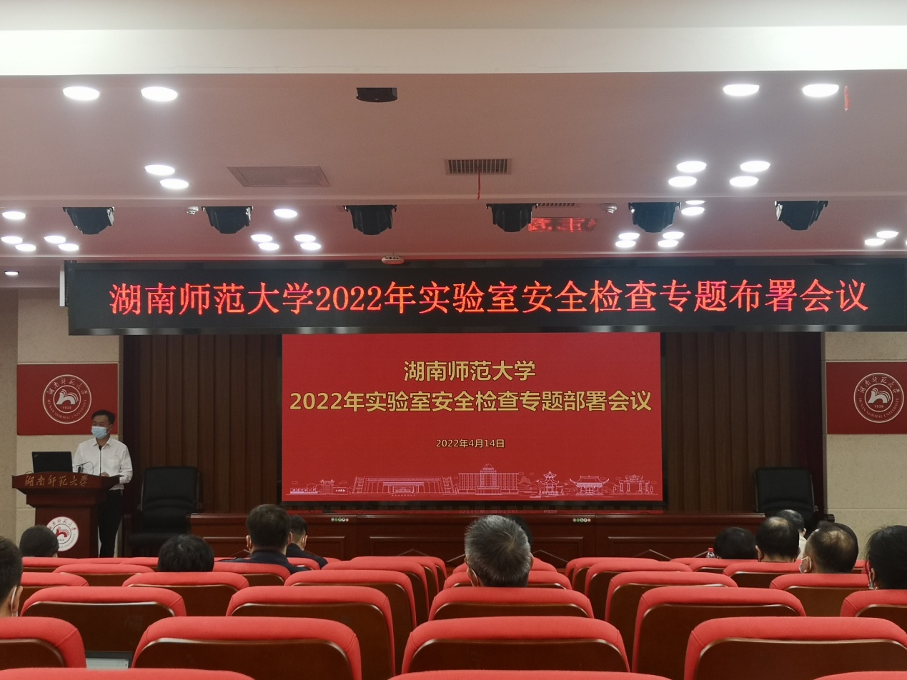 4月14日下午,我校在中和楼129报告厅召开2022年实验室安全检查专题部署会议。校实验室安全领导小组副组长、副校长杨震出席会议。会议由校实验室安全领导小组办公室主任、资产与实验室管理处处长向坚持主持。