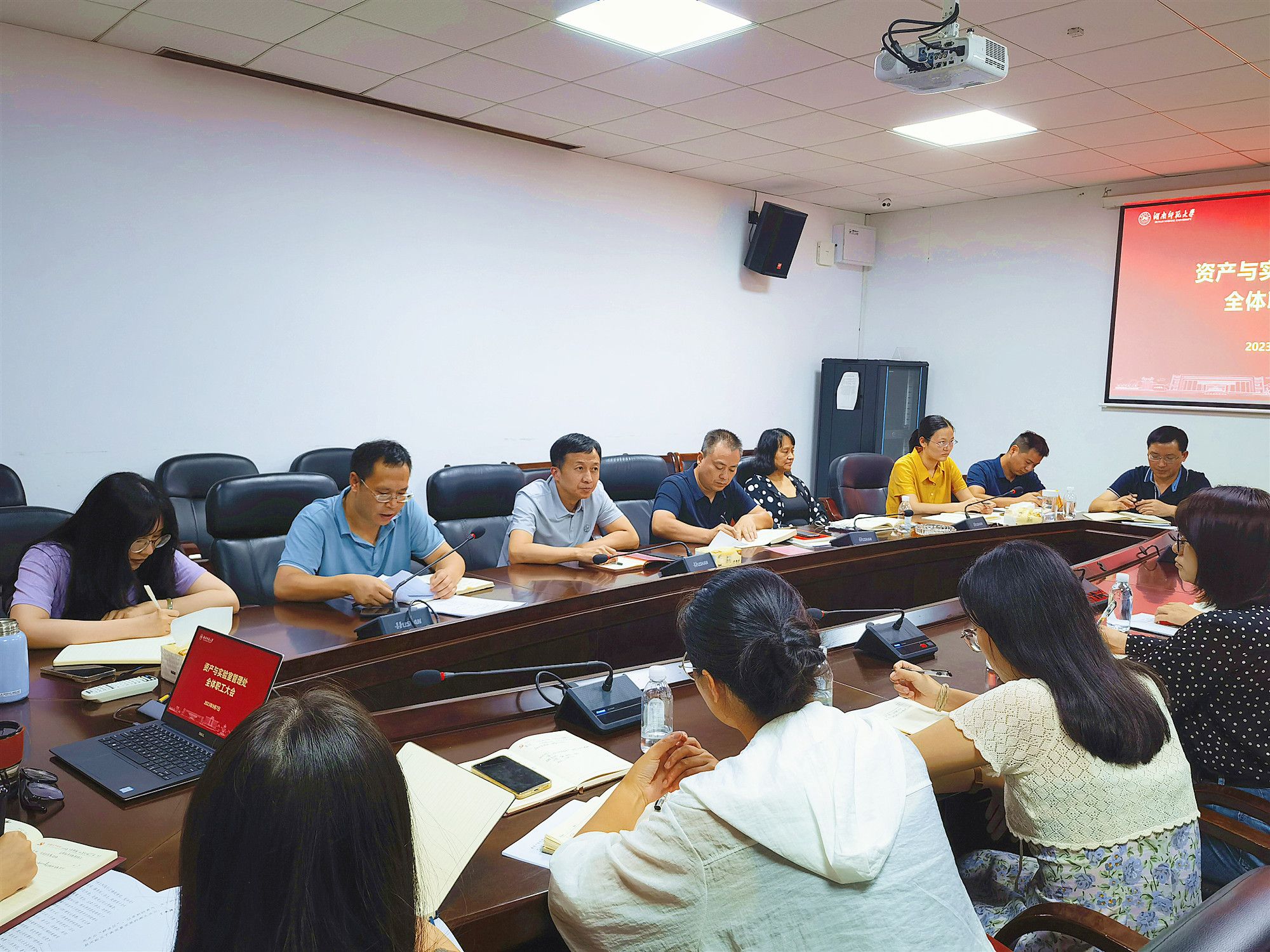 9月7日下午,资产与实验室管理处在处会议室召开新学期工作会议,学习传达学校新学期工作会议精神,布置新学期工作。处长许广,副处长李江、罗万才参加会议,会议由罗万才主持。