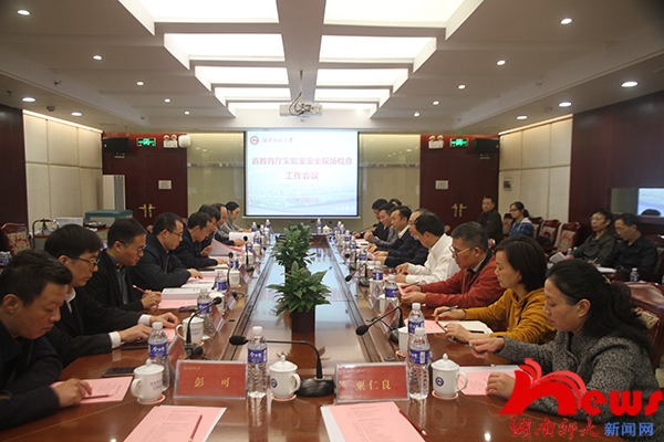 近日,省教育厅检查组来校检查实验室安全工作。学校在国际学术交流中心四楼会议室召开会议,省教育厅检查组组长卢其斌、我校副校长欧阳峣出席。会议由校长办公室副主任黄小兵主持。