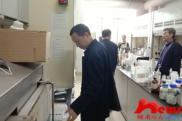 检查组分别赴医学院、化工院和生科院实验室实地考察,检查组成员边看边问,对各处可能存在的问题一一检查。